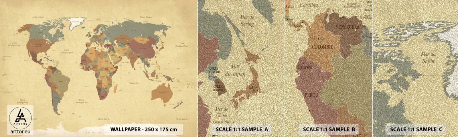 Échantillon de Papier Peint Premium Sand - Pour vous - le monde entier - Carte du monde, Continents, Voyages - 100x30 cm