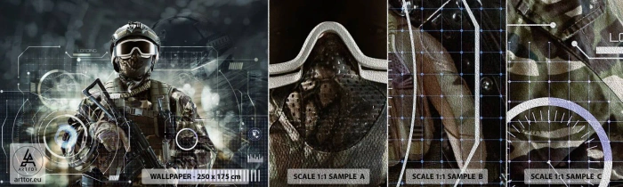 Échantillon de Papier Peint Premium Sand - Puissance sans limite - Abstraction, Soldat, Commando - 100x30 cm