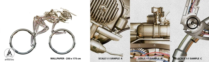 Échantillon de Papier Peint Premium Sand - Machine exceptionnelle - Abstraction, Vélo, Graphique - 100x30 cm