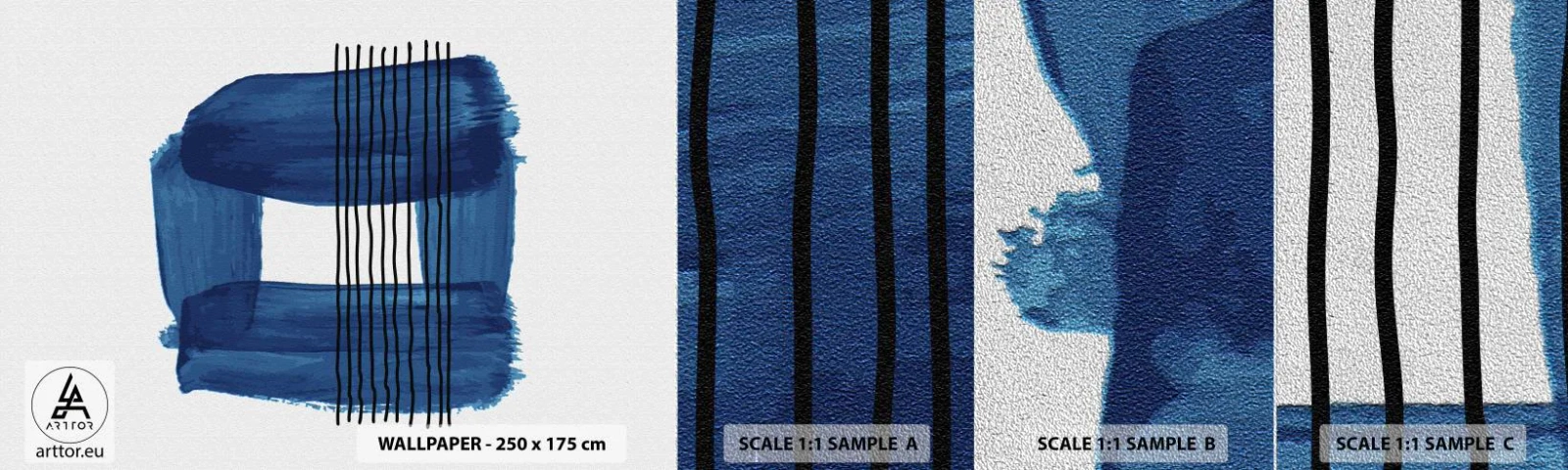 Échantillon de Papier Peint Premium Sand - Composition noire-bleue - Abstraction, Morceau, Art moderne - 100x30 cm