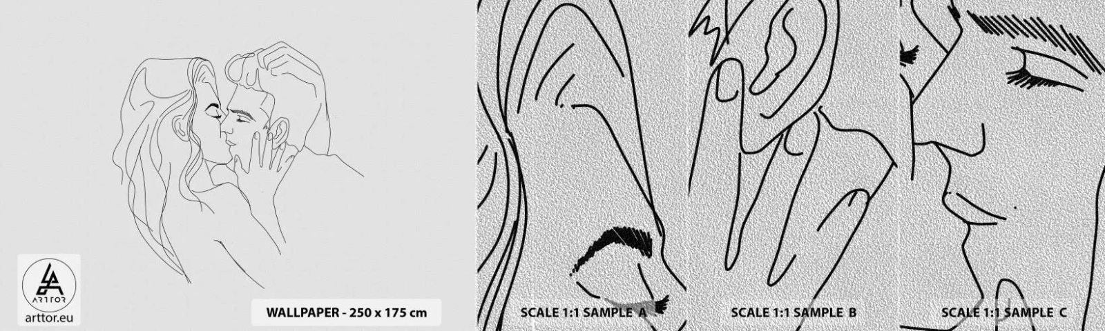 Échantillon de Papier Peint Premium Sand - La même ligne - Graphique, Couple amoureux, Baiser - 100x30 cm