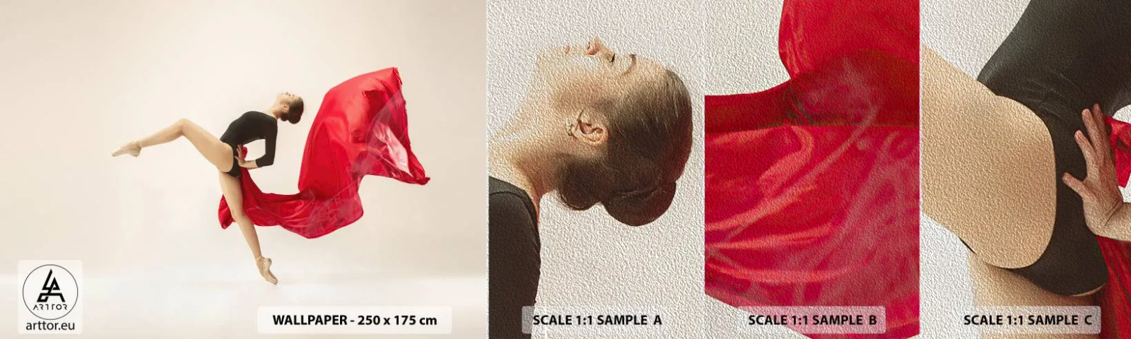 Échantillon de Papier Peint Premium Sand - Rouge et noir - Ballerine, Danse, Ballet - 100x30 cm