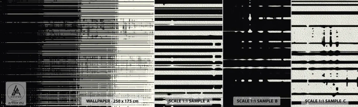 Échantillon de Papier Peint Premium Sand - Ondes et vibrations - Noir et blanc, Codes-barres, Lignes - 100x30 cm