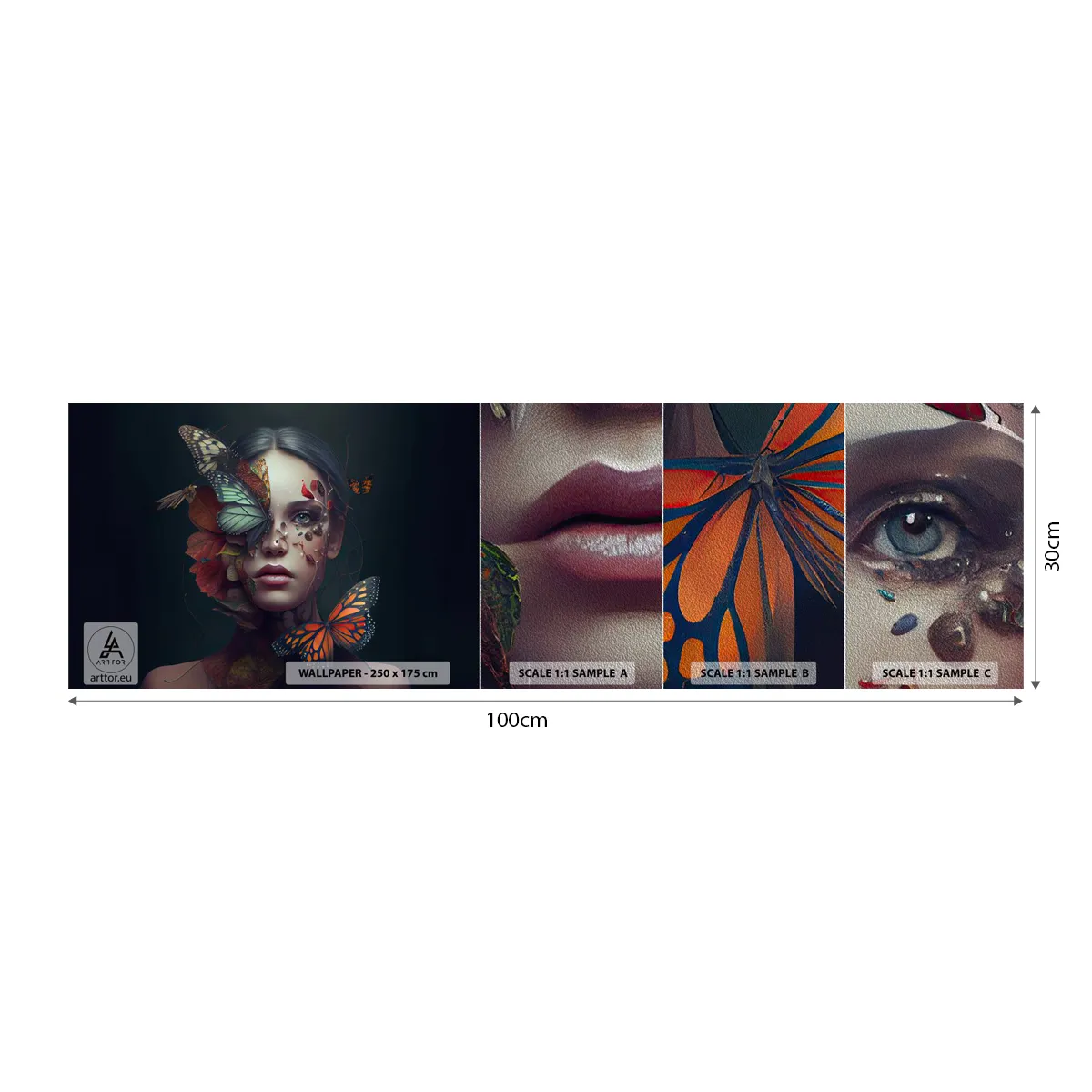Échantillon de Papier Peint Premium Sand - Une merveilleuse métamorphose - Papillons, Affronter, Femme - 100x30 cm