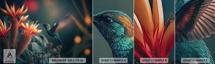 Échantillon de Papier Peint Premium Sand - une vie vraiment colorée - Oiseau, Exotique, Fleur - 100x30 cm