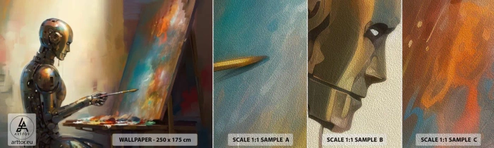 Échantillon de Papier Peint Premium Sand - L'art du futur - Peinture, Robot, Brosse - 100x30 cm