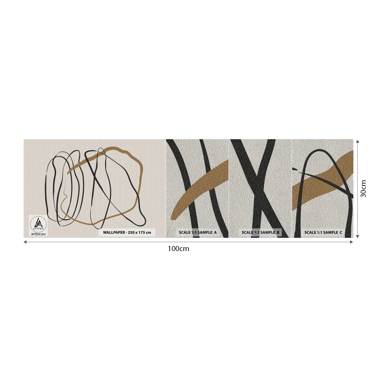 Échantillon de Papier Peint Premium Sand - Composition – danse en boucle - Morceau, Minimaliste, Art Déco - 100x30 cm