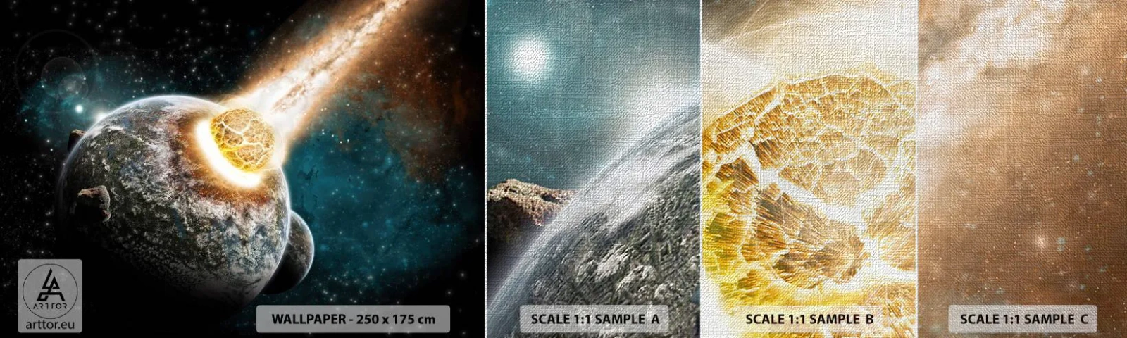 Échantillon de Papier Peint Premium Canvas - Destruction ou naissance? - Abstraction, Cosmos, Comète - 100x30 cm