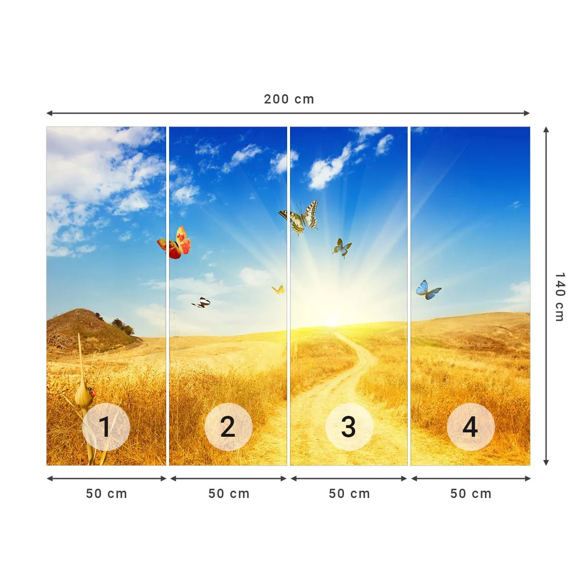 Papier Peint Photo Premium Canvas - Et comment ne pas aimer l'été ? - Paysage, Papillons, Nature - 200x140 cm