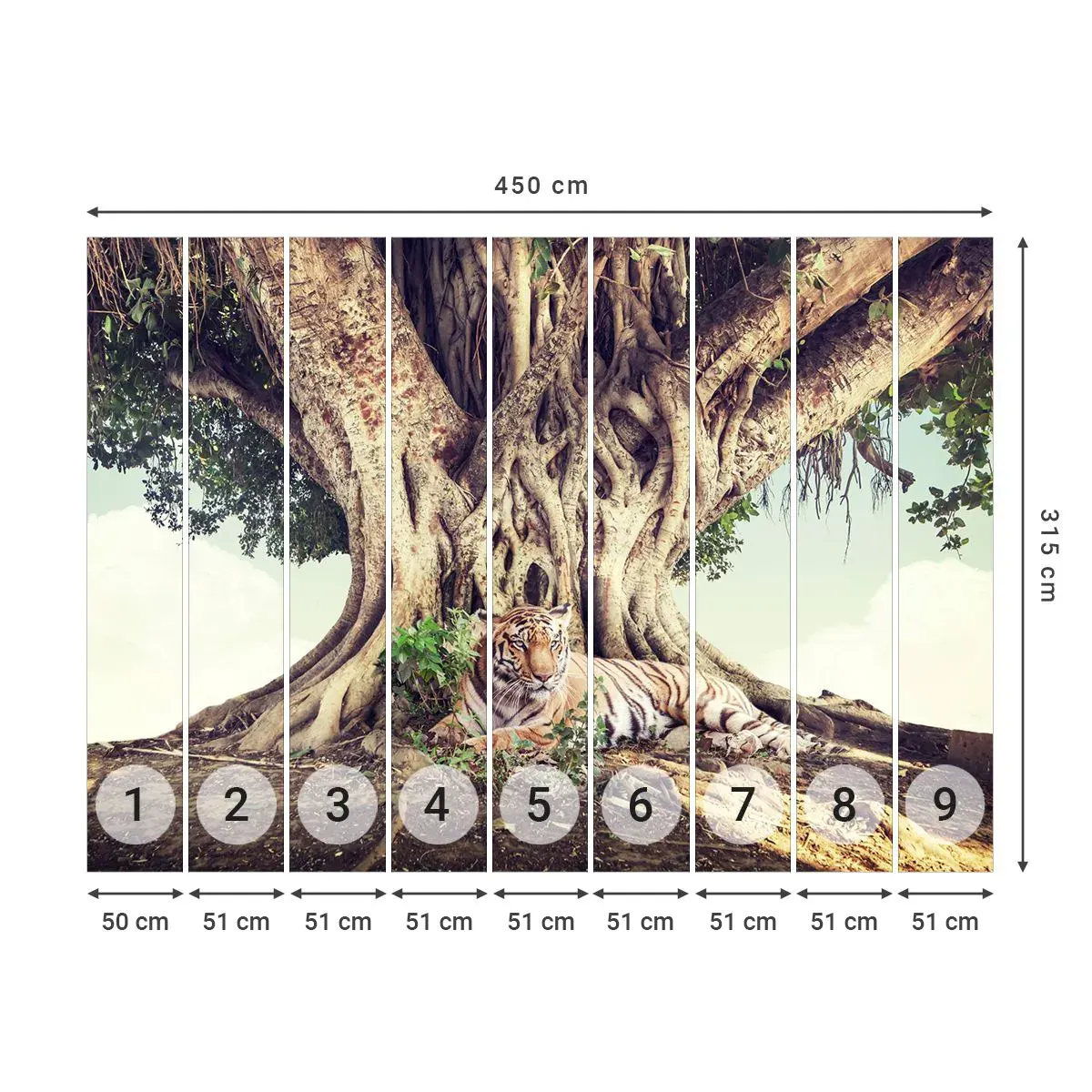 Papier Peint Autocollant Deluxe Sticker - Vue du Livre de la Genèse - tigre du Bengale, Inde, Paysage - 450x315 cm