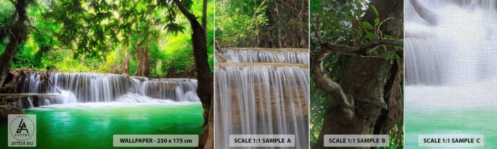 Échantillon de Papier Peint Premium Canvas - Une cascade de vert - Paysage, Cascade, parc national - 100x30 cm
