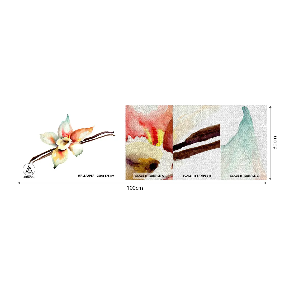 Échantillon de Papier Peint Premium Canvas - Douceur de couleur renversée - Fleur de Vanille, Fleur, Bâton de vanille - 100x30 cm