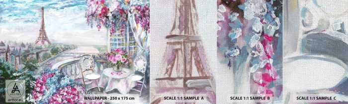 Échantillon de Papier Peint Premium Canvas - C'est le plus beau ici en mai - Ville, tour Eiffel, Paris - 100x30 cm