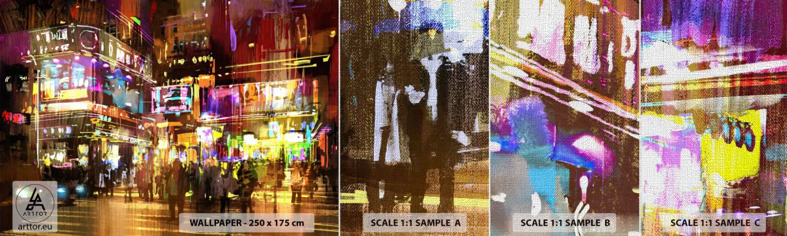 Échantillon de Papier Peint Premium Canvas - Dans une mer de lumière - Ville, Architecture, Vie nocturne - 100x30 cm