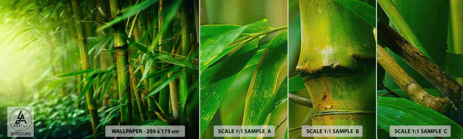 Échantillon de Papier Peint Premium Canvas - Apprenez à connaître le vert lui-même - Usine, Bambou, Jungle - 100x30 cm