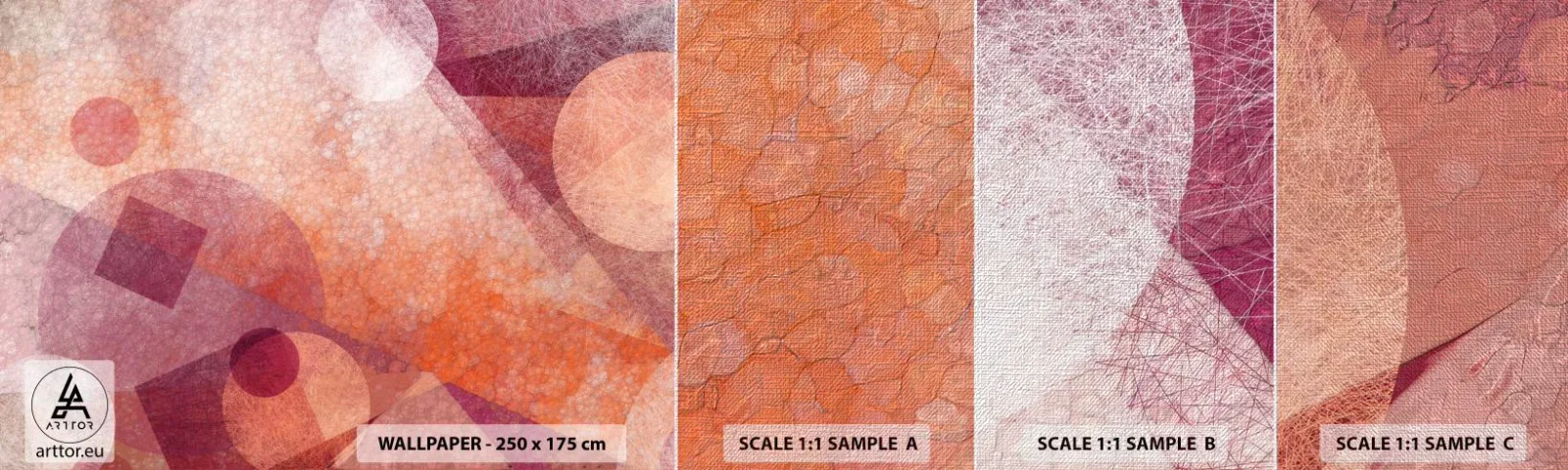 Échantillon de Papier Peint Premium Canvas - Transformations géométriques en rose - Abstraction, Morceau, Modèle moderne - 100x30 cm