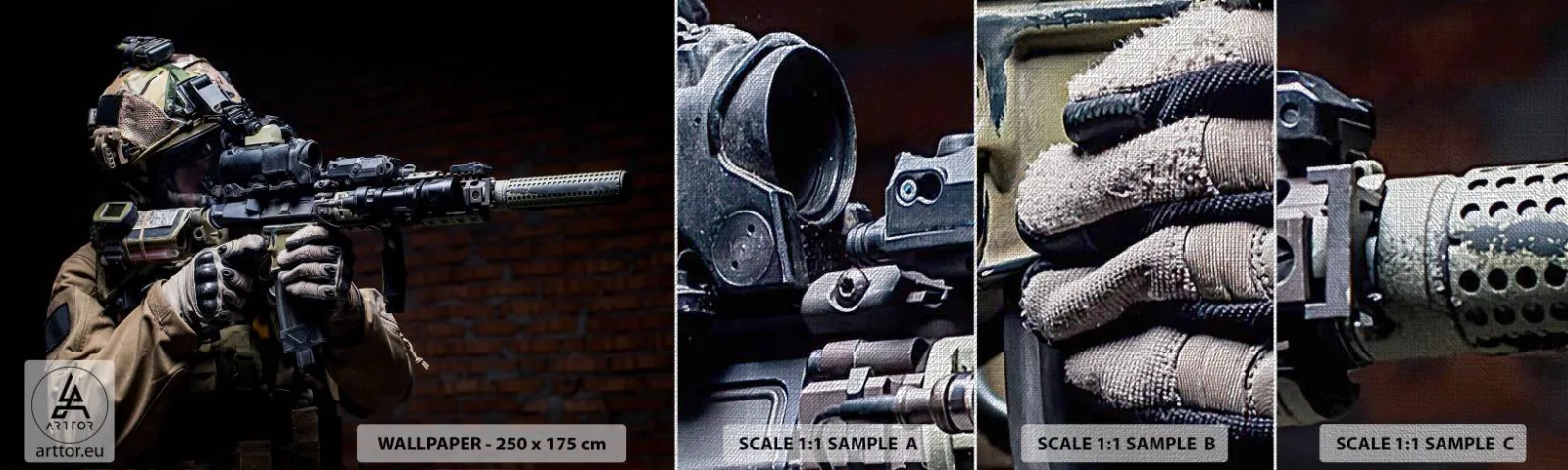 Échantillon de Papier Peint Premium Canvas - Meurtrier efficace - Militaire, Fusil, Arme - 100x30 cm