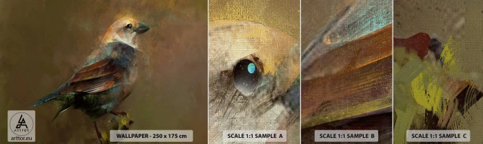 Échantillon de Papier Peint Premium Canvas - Un moineau, un petit oiseau - Abstraction, Oiseau, Nature - 100x30 cm