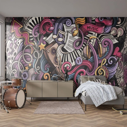 Papier Peint Photo Premium Canvas - Mélodie compliquée - Musique, Mural, Graffiti - 200x140 cm
