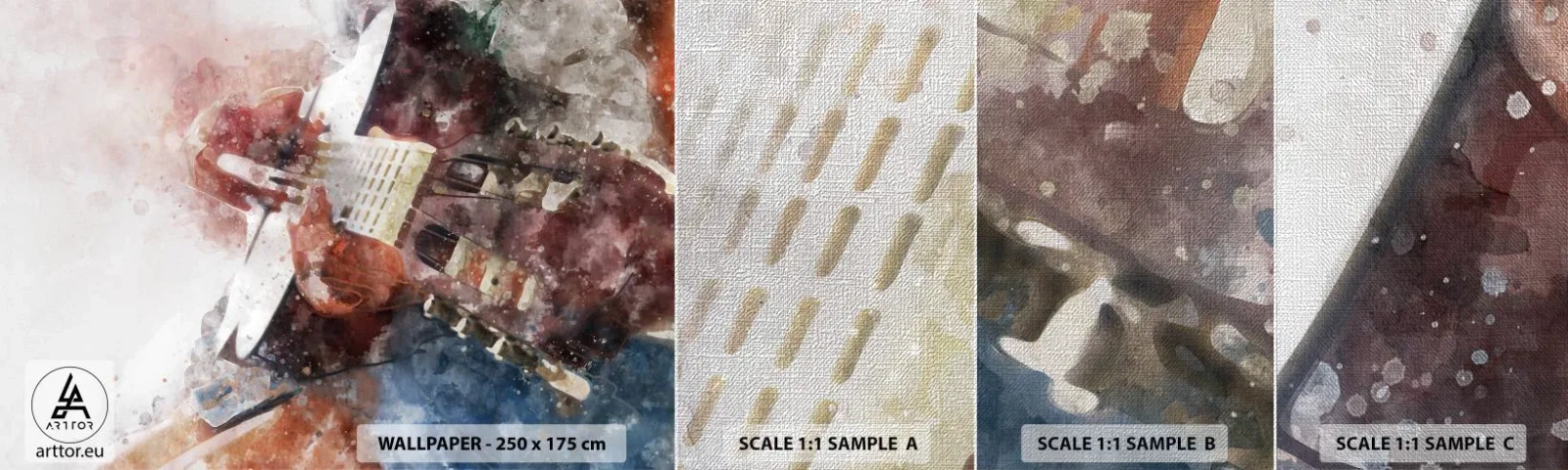 Échantillon de Papier Peint Premium Canvas - Et qu'en pensez-vous ? - Abstraction, Musique, Guitare - 100x30 cm