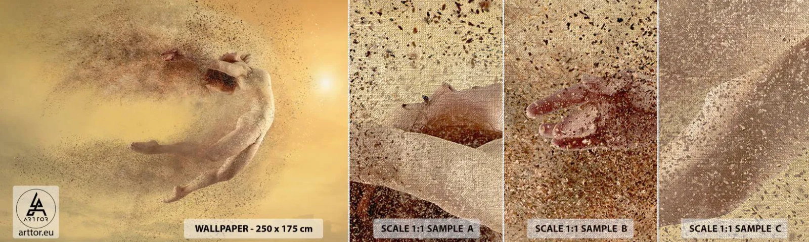 Wysoka Gramatura 290g/m2 wraz z odczuwalną strukturą Piasku na powierzchni tapety, czyni produkt ekskluzywnym i designerskim rozwiązaniem dla każdego amatora unikatowych dekoracji wnętrzarskich. Zaleta wyjątkowej grubości materiału to również doskonałe krycie, które jednocześnie znacząco ułatwia montaż. Struktura fototapety PREMIUM SAND sprawia wrażenie wydruku na drobnoziarnistej strukturze przypominającej piasek.