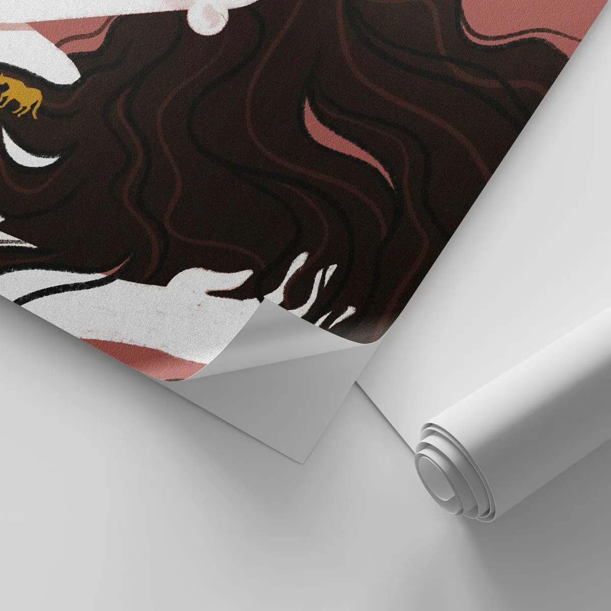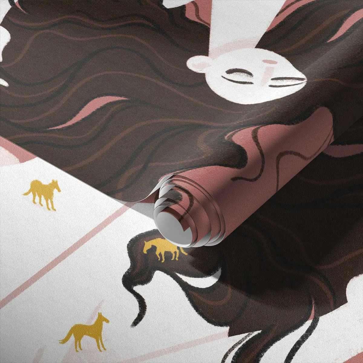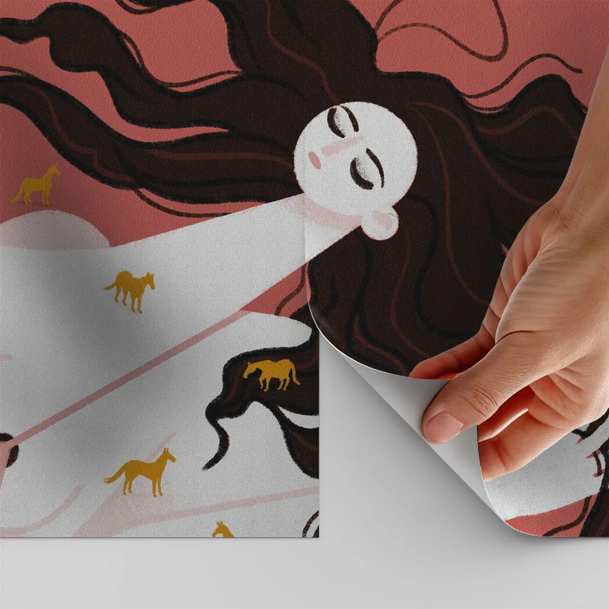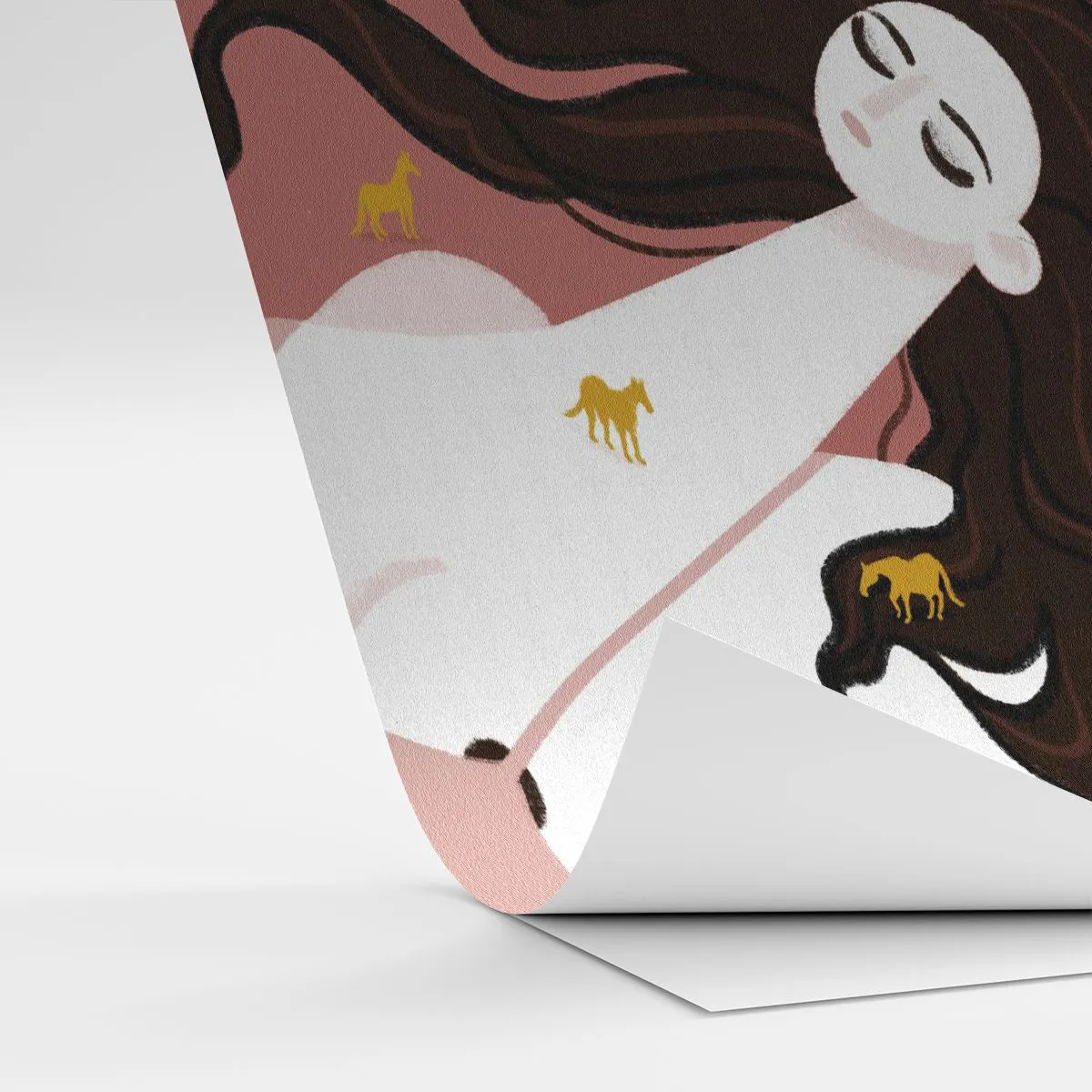 Papier Peint Autocollant Deluxe Sticker - Rêve d'un cheval d'or - Femme, Portrait, Minimalisme - 100x70 cm