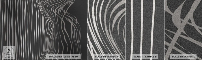 Échantillon de Papier Peint Premium Canvas - Rythme et accent - Abstraction, Morceau, Noir et blanc - 100x30 cm