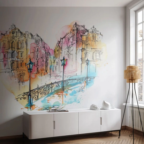 Papier Peint Photo Premium Sand - Le coeur de la ville - Ville, Architecture, Pont - 300x210 cm