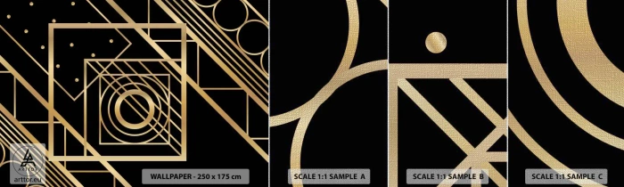 Échantillon de Papier Peint Premium Canvas - Géométrie en or - Abstraction, Morceau, Graphique - 100x30 cm