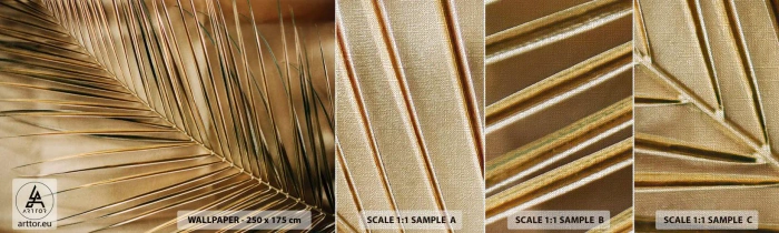 • Feuille de palmier, graphiques, tropiques, Botanique, Nature, Pour le bureau, Pour le bureau, Pour la salle à manger, Pour le hall, Pour le salon, Pour la chambre, Marron, Or