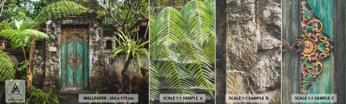 Échantillon de Papier Peint Premium Canvas - Porte vers un monde exotique - Porte avec ornement, Architecture, Mystère - 100x30 cm
