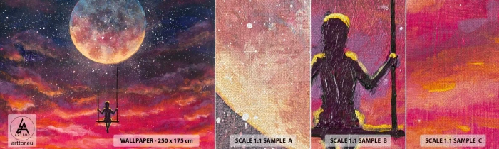Échantillon de Papier Peint Premium Canvas - Se balancer dans les nuages - Abstraction, Fantaisie, Lune - 100x30 cm