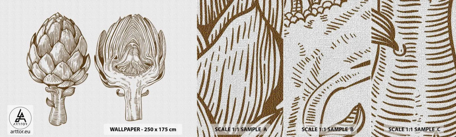 Échantillon de Papier Peint Premium Canvas - Leçon d’anatomie - Artichaut, Cuisine, Légumes - 100x30 cm