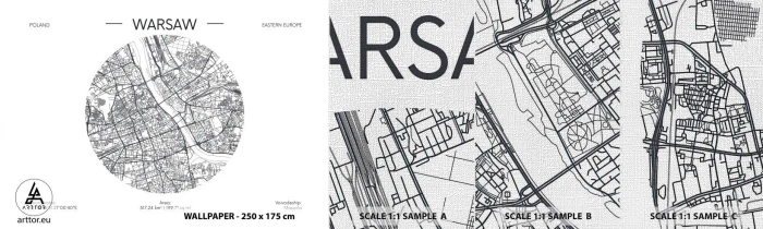 Échantillon de Papier Peint Premium Canvas - Anatomie de Varsovie - Carte, Varsovie, Pologne - 100x30 cm