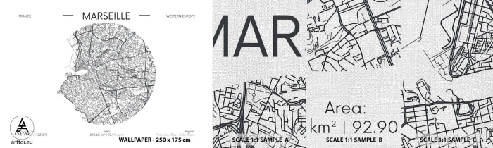 Échantillon de Papier Peint Premium Canvas - Anatomie de Marseille - Carte, Marseille, France - 100x30 cm
