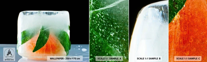Échantillon de Papier Peint Autocollant Deluxe Sticker - Fraîcheur et rafraîchissement - Glaçon, Orange, Feuille de menthe - 100x30 cm