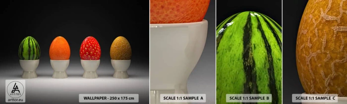 Échantillon de Papier Peint Autocollant Deluxe Sticker - Petit-déjeuner fruité - Abstraction, Fruit, Œuf - 100x30 cm