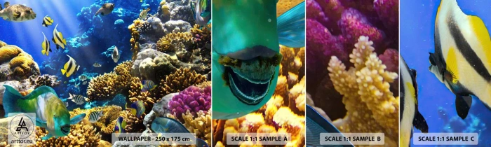 Échantillon de Papier Peint Autocollant Deluxe Sticker - Beaucoup de circulation sur la route des vacances - récif de corail, Océan, Poisson - 100x30 cm