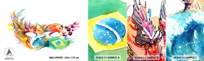 Échantillon de Papier Peint Autocollant Deluxe Sticker - Le Brésil accueille la samba - Capot, Carnaval, Abstraction - 100x30 cm