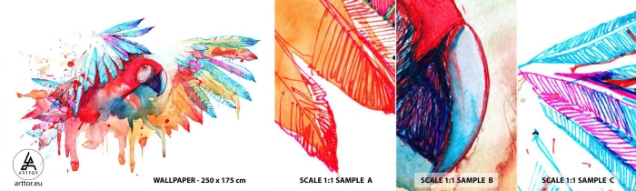 Échantillon de Papier Peint Autocollant Deluxe Sticker - . - Perroquet, Oiseau, Abstraction - 100x30 cm