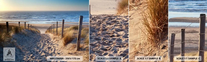 Échantillon de Papier Peint Autocollant Deluxe Sticker - Le bruit de la mer, le chant des oiseaux, une plage sauvage parmi les herbes… - Paysage, Plage, Dunes - 100x30 cm