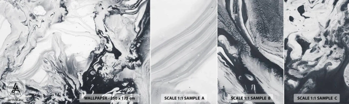Échantillon de Papier Peint Autocollant Deluxe Sticker - Au centre de la Terre - Abstraction, Morceau, Noir et blanc - 100x30 cm