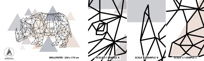 Échantillon de Papier Peint Autocollant Deluxe Sticker - Structure de force - Abstraction, Graphique, Rhinocéros - 100x30 cm