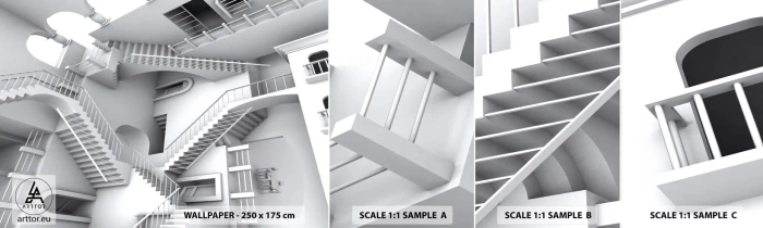 Échantillon de Papier Peint Autocollant Deluxe Sticker - Paradoxes spatiaux - Abstraction, 3D, Architecture - 100x30 cm