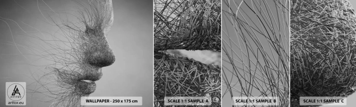 Échantillon de Papier Peint Autocollant Deluxe Sticker - L'esprit du vent - Abstraction, Visage de femme, Graphique - 100x30 cm