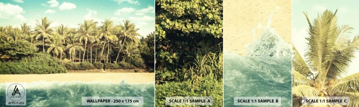Échantillon de Papier Peint Autocollant Deluxe Sticker - Peut-être ici? - Paysage, Plage, Cocotier - 100x30 cm