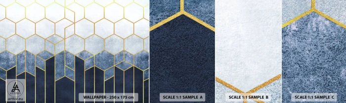 Échantillon de Papier Peint Autocollant Deluxe Sticker - Composition en rythme syncopé - Abstraction, Morceau, Hexagone - 100x30 cm
