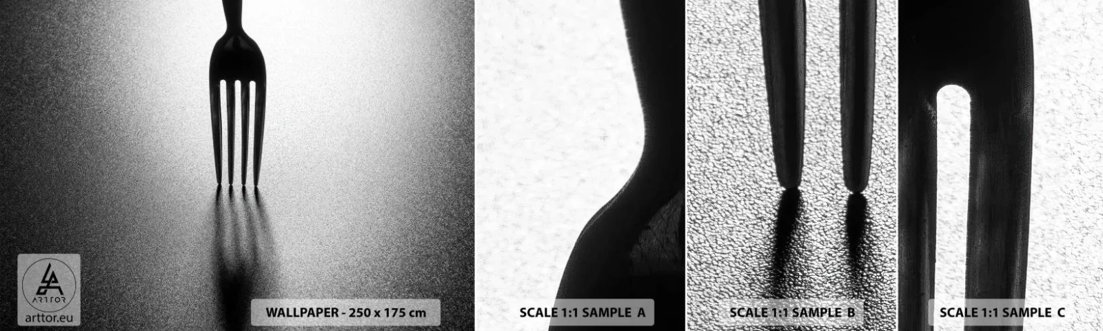 Échantillon de Papier Peint Autocollant Deluxe Sticker - Lumière et ombre - Fourchette, Coutellerie, Cuisine - 100x30 cm