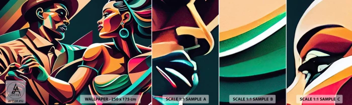 Échantillon de Papier Peint Autocollant Deluxe Sticker - Au rythme du coeur - Cubisme, Couple, Danse - 100x30 cm