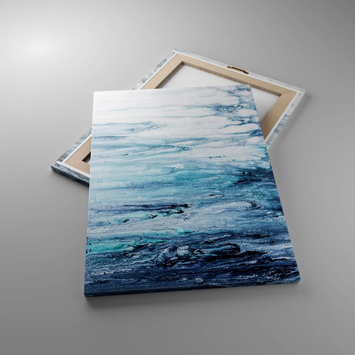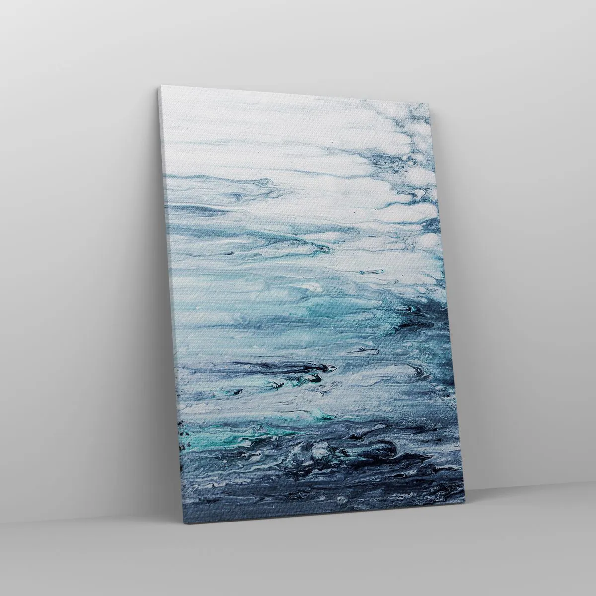 Impression sur toile - Image sur toile - Des stries bleues et blanches abstraites ressemblant à des glaçons - 50x70cm - Une glace bleue - Décoration murale moderne pour le salon et la chambre ARTTOR